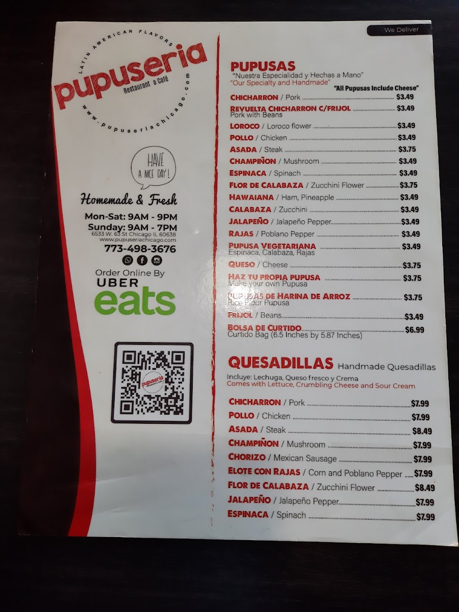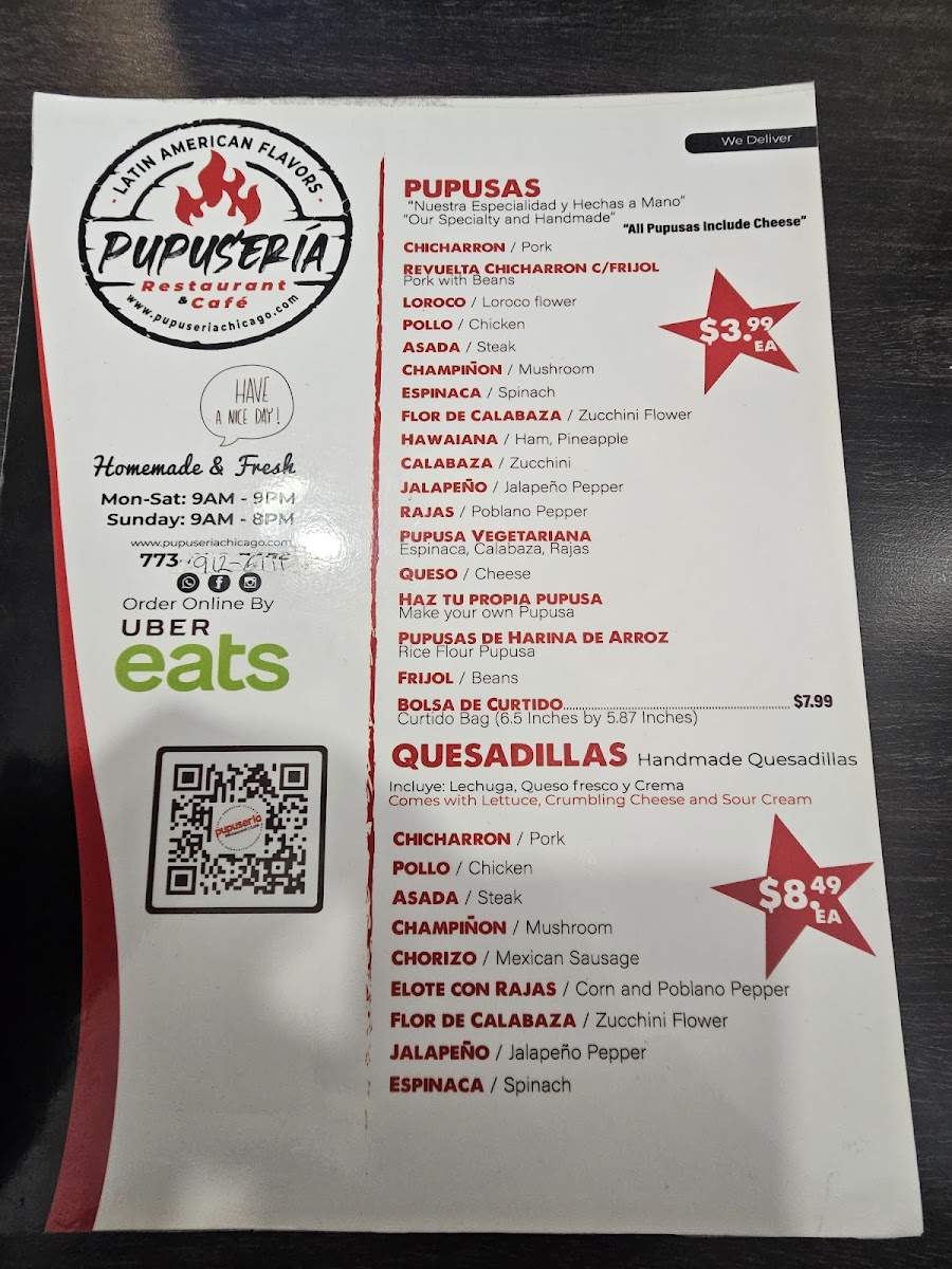 Pupuseria Cafe Menu (Update 2025)